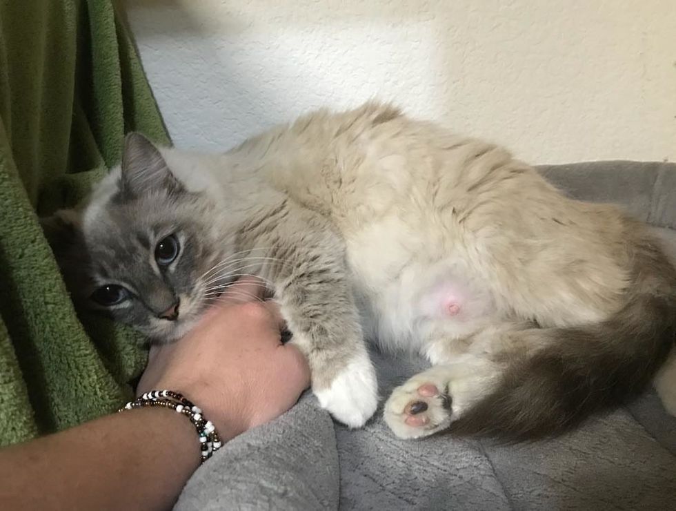 Three days before she gave birth, Millie started meowing frantically and trying to squeeze under furniture.