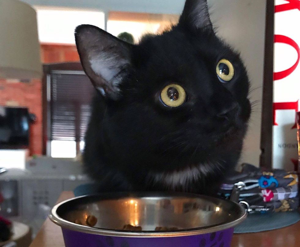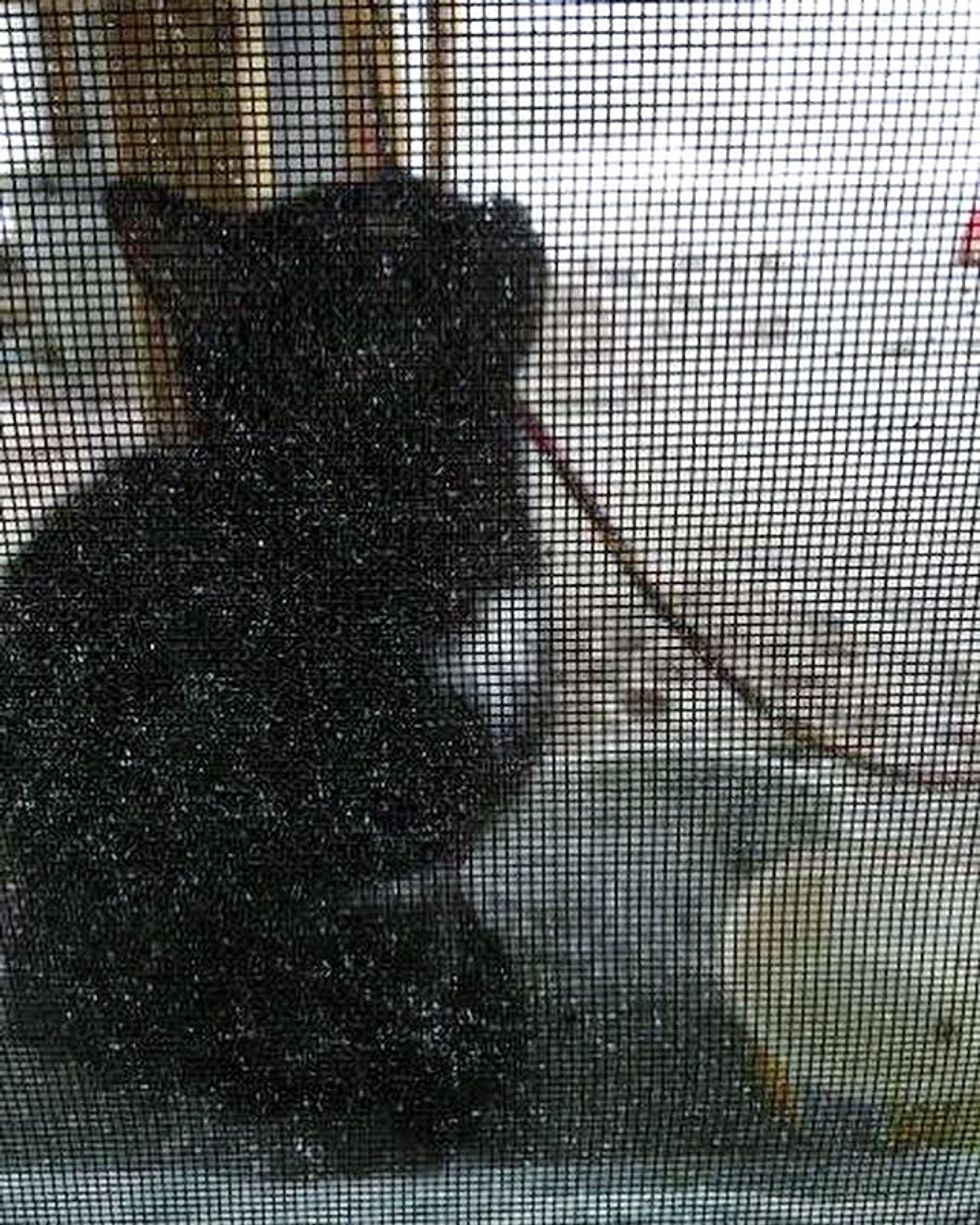 The neighborhood stray returned to the same house every day after her first visit. She waited by the window until she got her daily feeding. The kitty had a big appetite and could pack in a lot of food.