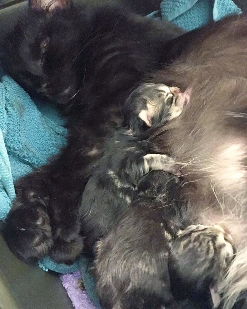 Laloue was looking for a safe home to have her kittens and found someone to help her.