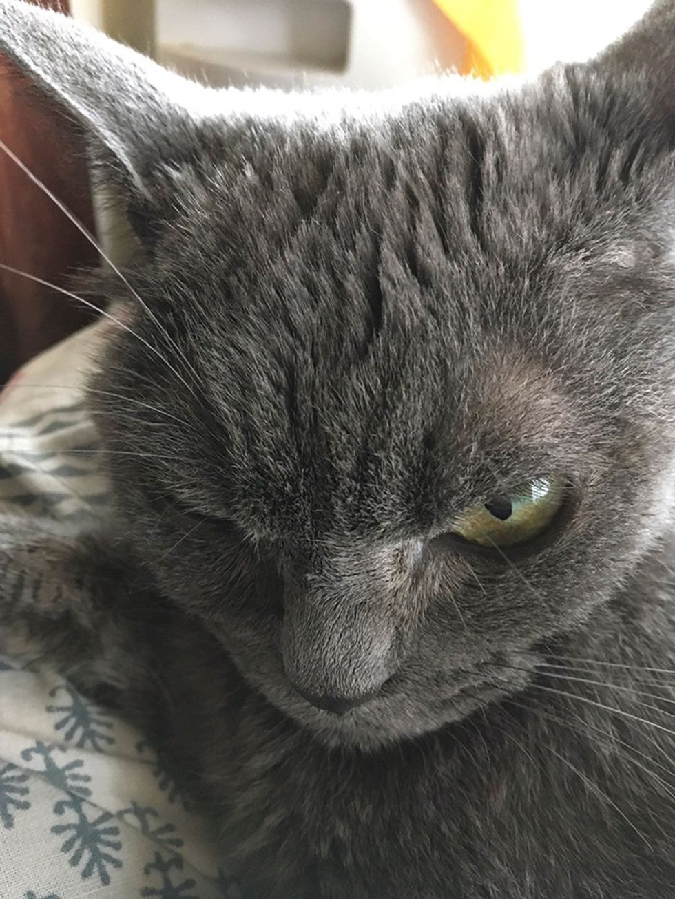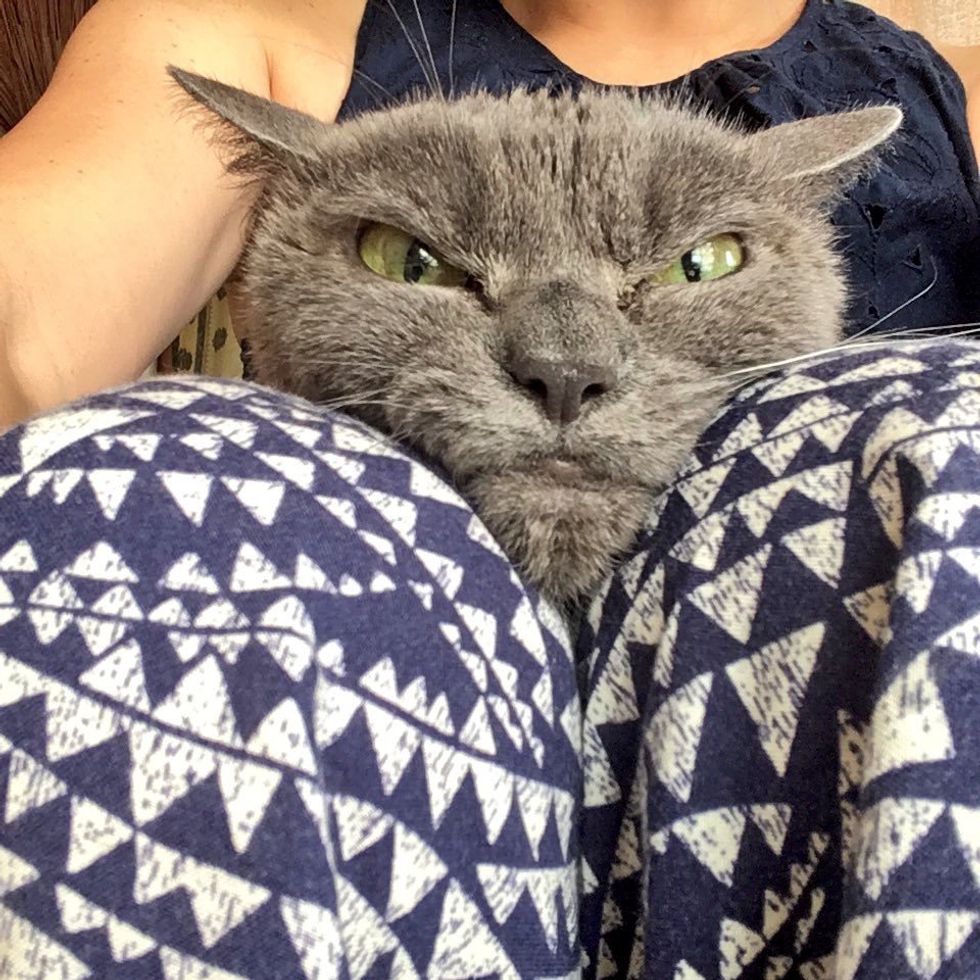 She may look grumpy 24/7, but she knows that the look is just there to intimidate small critters.