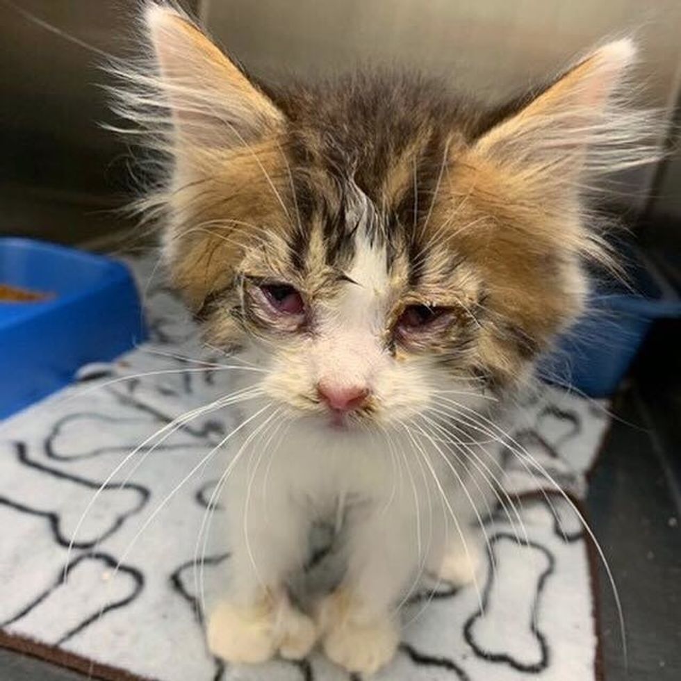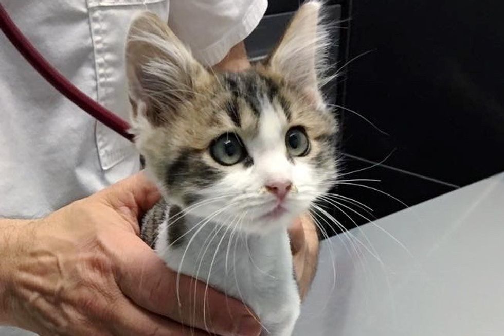About a month ago, a 7-week-old kitten was turned into a pound in Montreal, Canada. He was found alone, just skin and bones and had trouble breathing. The little tabby had a severe case of an upper respiratory infection.