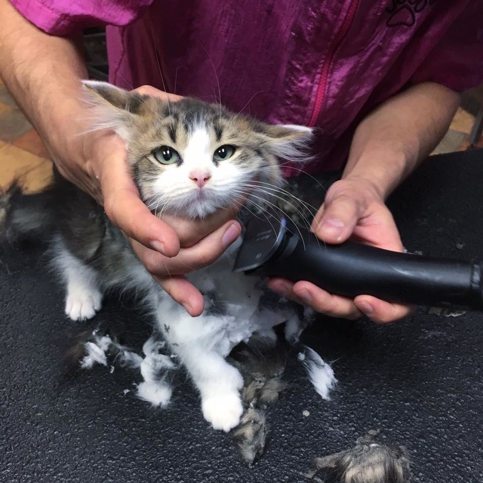 Murphy also got a haircut after he was treated for lice. After a rough start to life, the little kitty can finally relax and enjoy being loved and pampered.