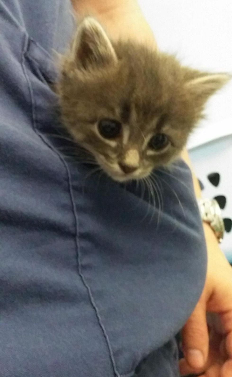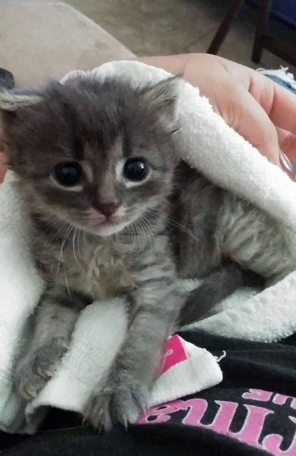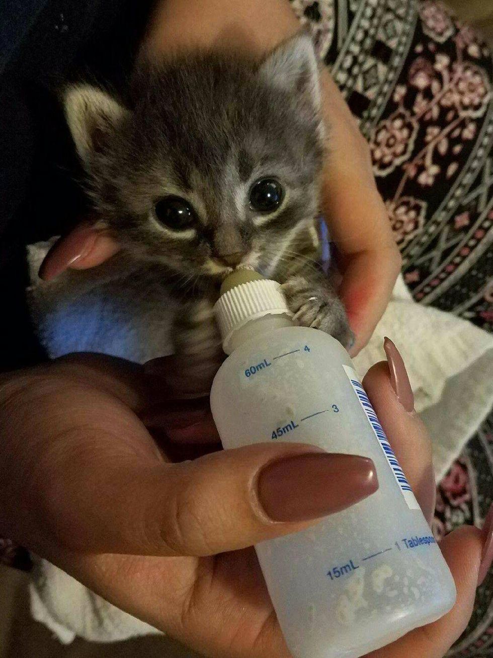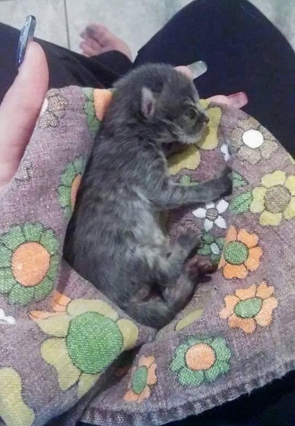 The tiny feline was just three days old when he was found abandoned by a firefighter. They brought him to an animal clinic where no one was confident that he would make it through the night but a vet decided to give the little guy a fighting chance by looking for a local rescue for help.